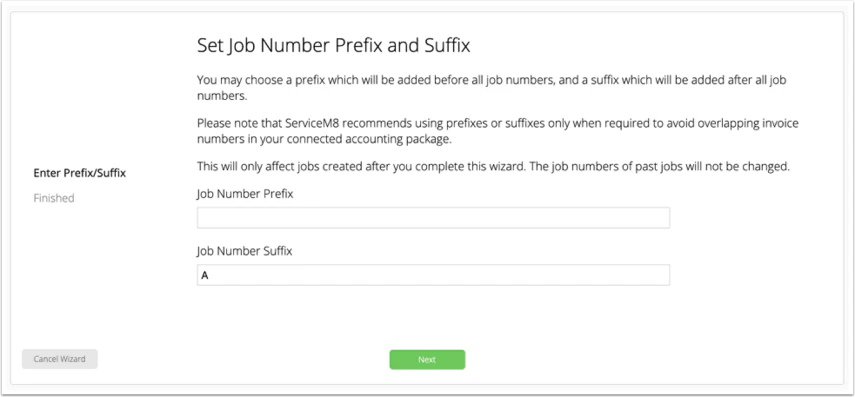 Find out whether you can add a prefix or suffix to job numbers in ServiceM8.