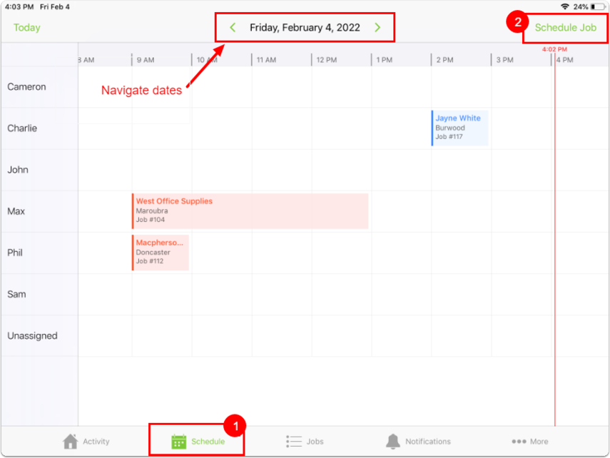 - Tap Jobs and find the job you would like to schedule. Tap the job to open its job card.