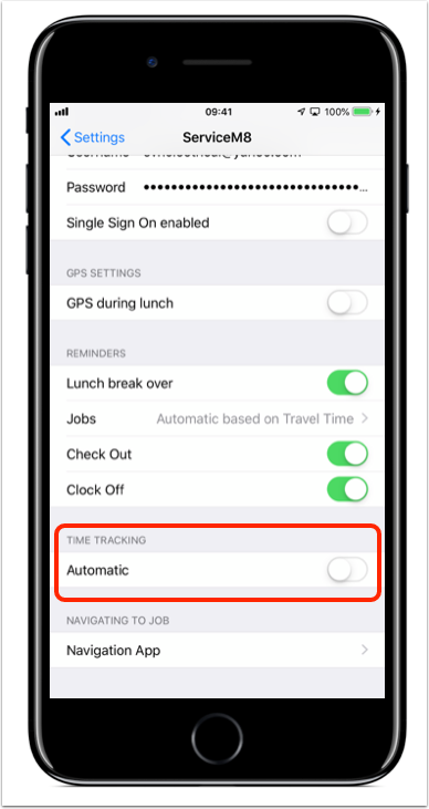 On the iPhone/iPad, go to Settings > ServiceM8 > Time Tracking, and turn off Automatic
