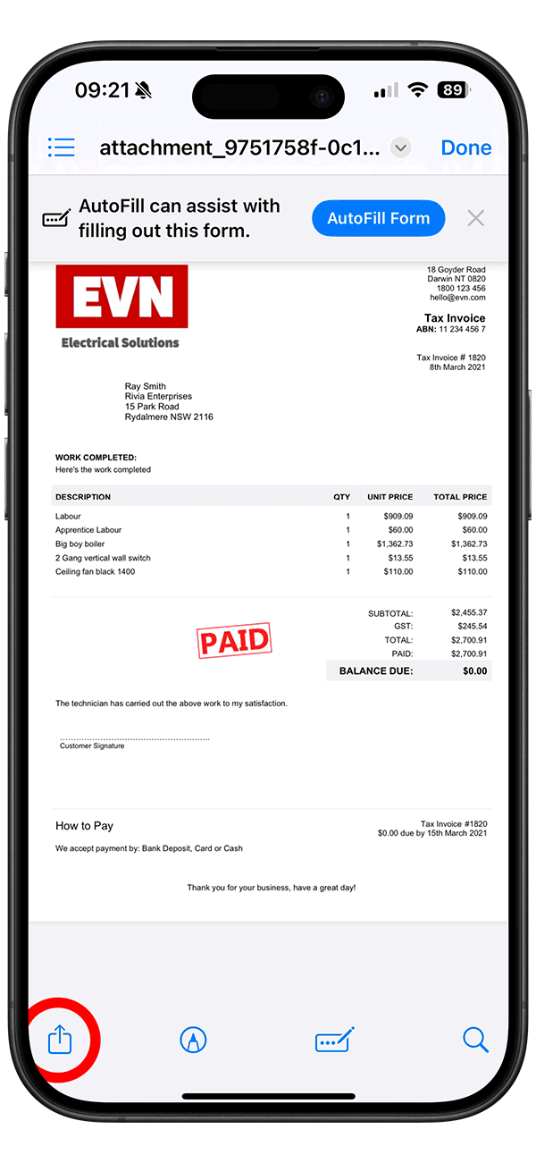 - Open the file on your iPhone/iPad, in whichever app it’s stored.