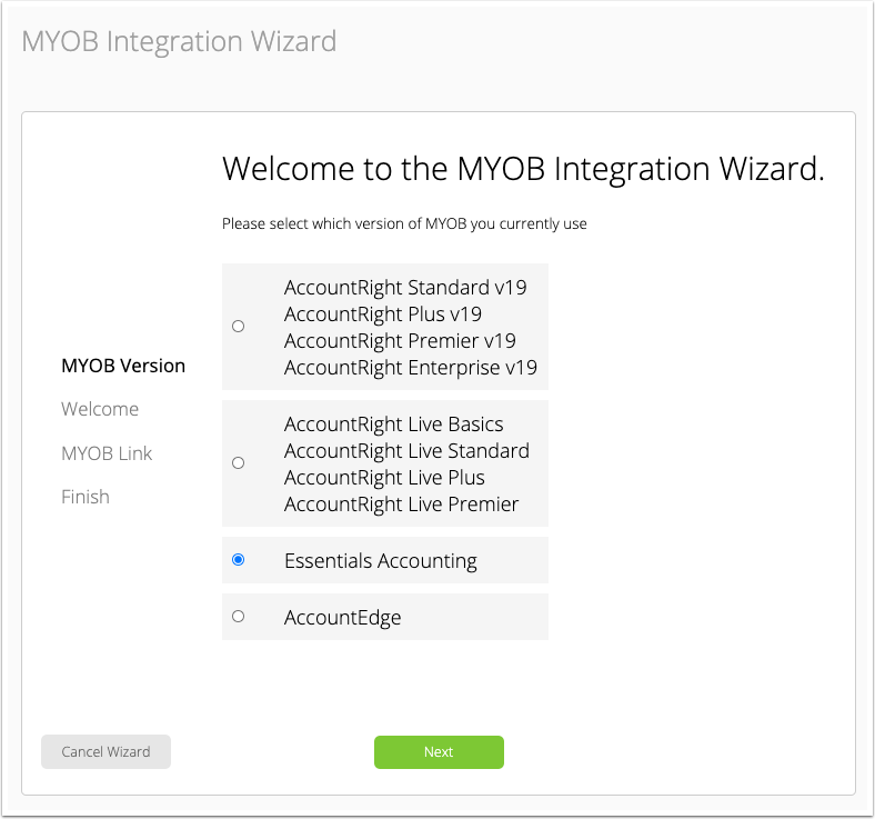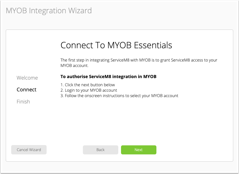 3. Click Next to connect to MYOB Essentials