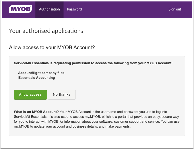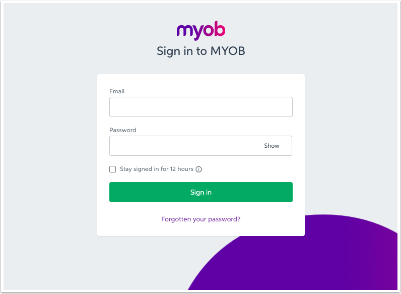 4. Sign in to your MYOB account