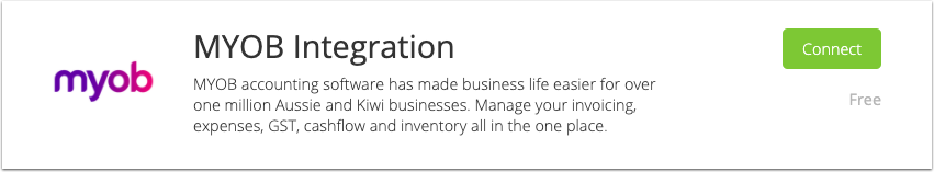 Search ‘MYOB Integration’, then click Connect