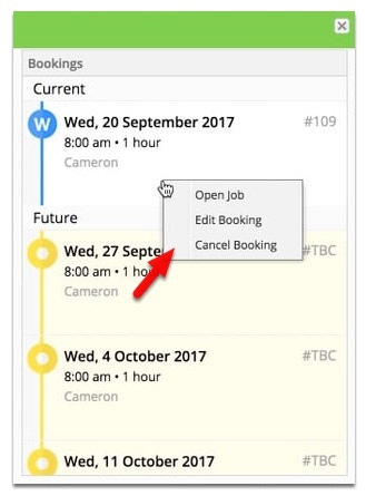 - Activate ‘inactive’ future bookings (these are designated yellow, with a ‘TBC’ job number). To activate a future recurring job, right-click > Open Job, or simply double-click.