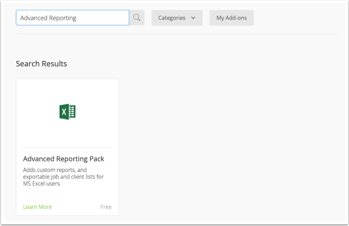 From the ServiceM8 Add-ons page, search the Advanced Reporting Pack add-on