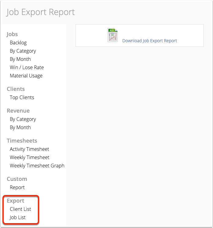 Once activated, you can export Client and Job reports: