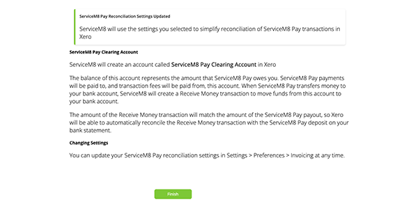 - When the funds are transferred to you, ServiceM8 will create a transaction in your accounting package to move the correct amount from your ServiceM8 Pay Clearing Account to your Bank Account.