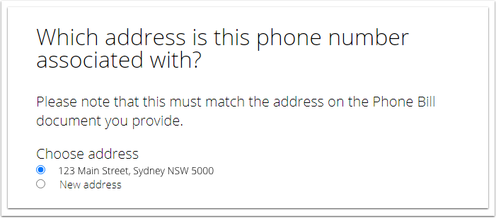 - A regular phone number with a standard area code (special 1300/1800/13 numbers are not supported); and