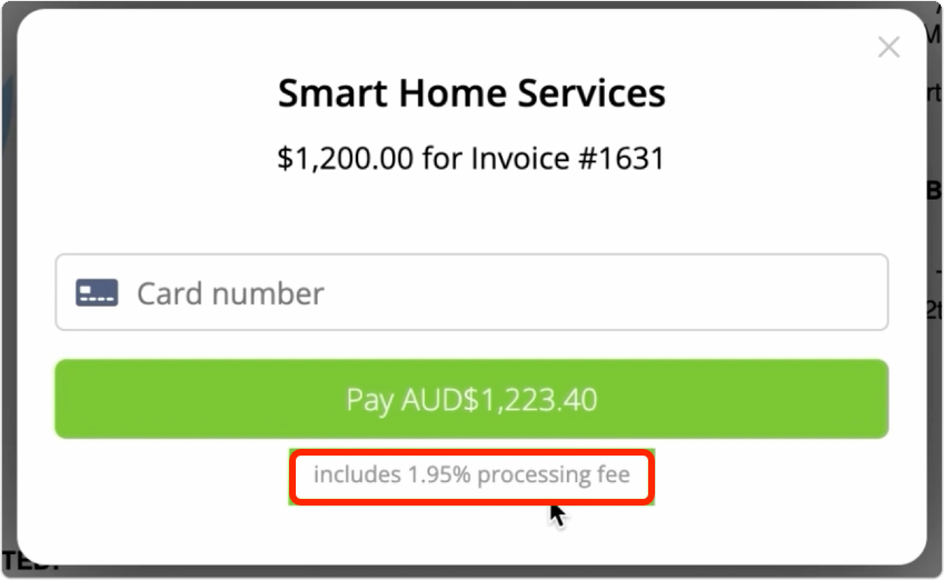 - If you’re using the ServiceM8 Pay add-on: the surcharge added will be the full processing fee e.g. if the fee in your region is 1.95% + 30 cents, the surcharge added for the client will be 1.95% + 30c.