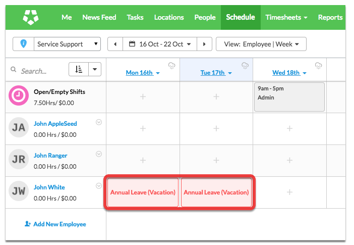 Here is the example of a staff time sheet in Deputy. That’s ready for you to approve. Timesheets will be posted into the default area of work that you have set up during the integration. You can customise each staff member’s area of work in ServiceM8’s Staff settings.