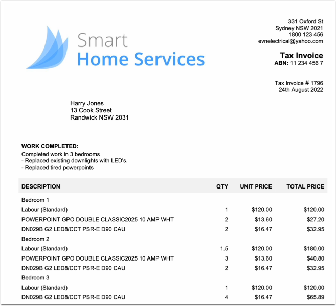 For large or complex jobs, breaking up your quote or invoice with some simple headings and structure can go a long way in helping clients understand what they’re looking at.