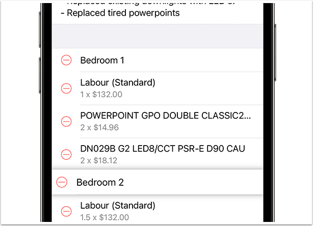 When preparing a quote or invoice, you can insert simple description lines between items, giving you the ability to break up your quotes & invoices into sections. Note that you’ll need to use a quote or invoice template which itemises your materials & services.